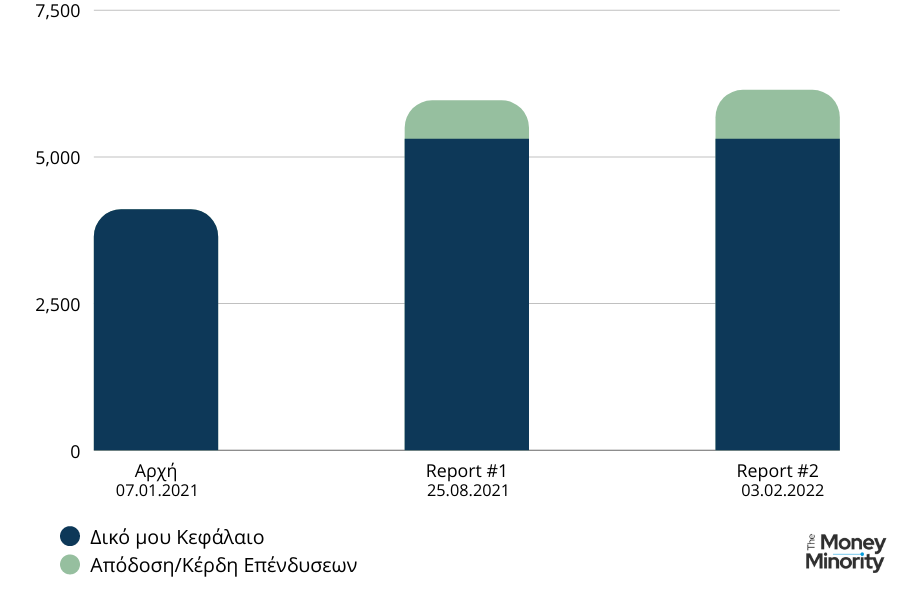 Παρακάτω, θα δούμε ποια ήταν η κατάσταση του χαρτοφυλακίου μας κατά το προηγούμενο Report #1 (25.08.21) και πως άνοιξε κατά το σημερινό Report #2 (03.02.22):